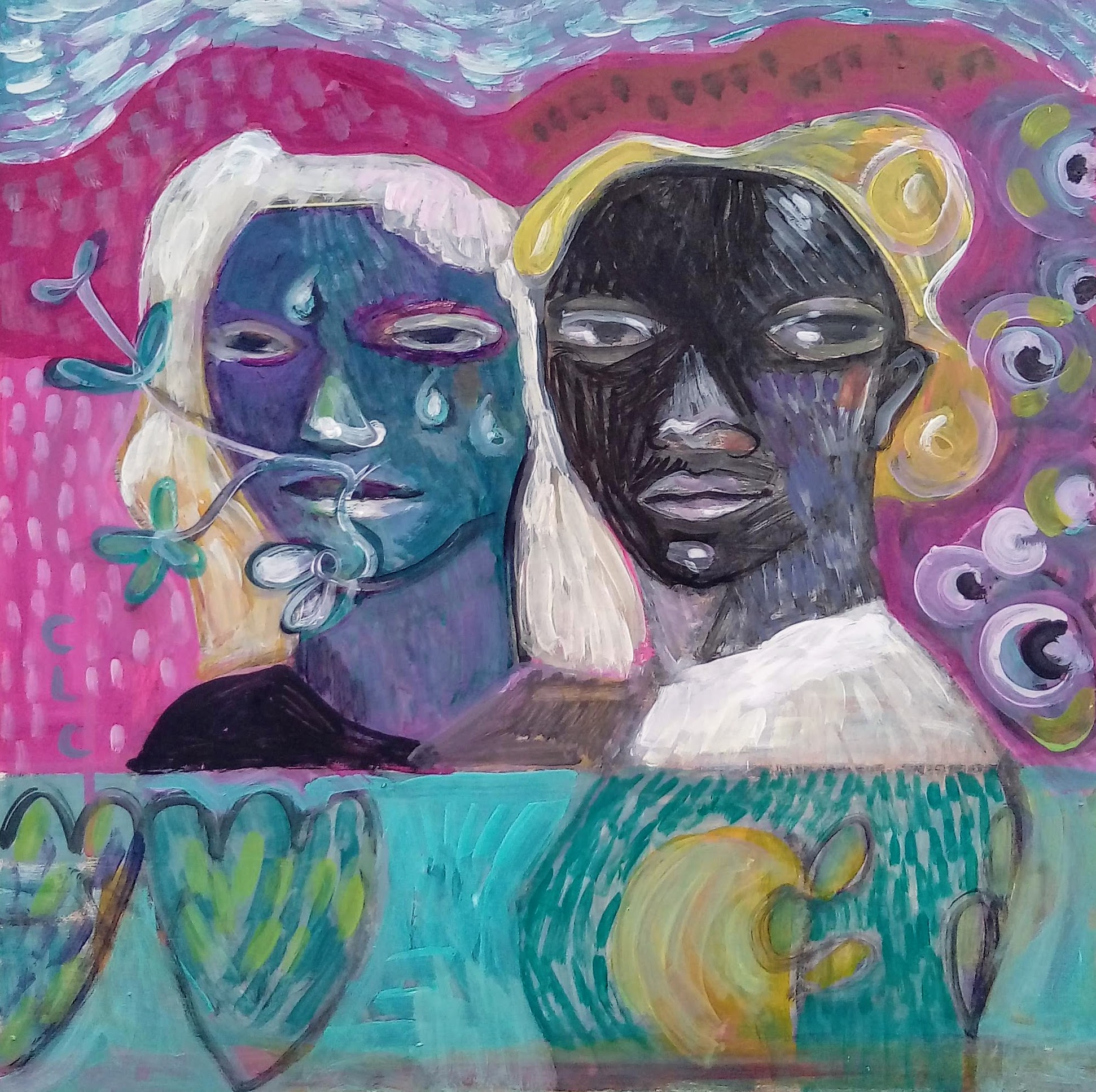 "Black and blue". acrílico sobre madera. 38 x 38.